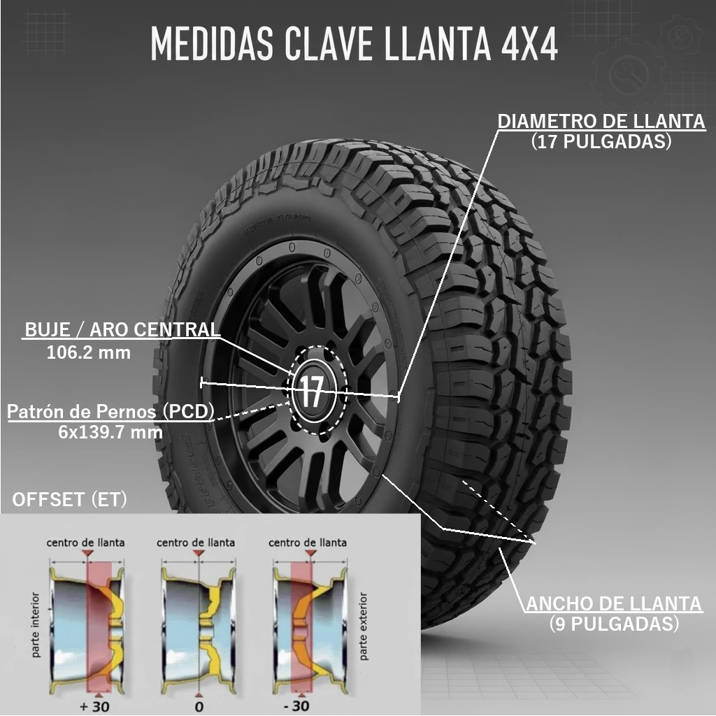 En el apasionante universo del 4x4 y la conducción todoterreno, la terminología puede parecer un laberinto para el recién llegado. Sin embargo, entender las medidas fundamentales de las llantas y sus componentes es crucial, no solo para la estética de nuestro vehículo, sino, lo que es más importante, para su rendimiento y seguridad en terrenos difíciles. Hoy desglosaremos algunos de los términos más comunes: pulgadas, buje y otras medidas clave que definen la compatibilidad y funcionalidad de nuestras ruedas todoterreno.
